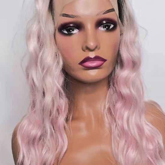 Meet Moonrose- soft, romantic, and seriously pretty. This wig is the definition of dreamy + wearable. A soft pastel pink blended with silvery blonde tones gives you that ultra-feminine, airy look without being too loud 0 just a beautiful pop of color that still feels elegant and flattering.